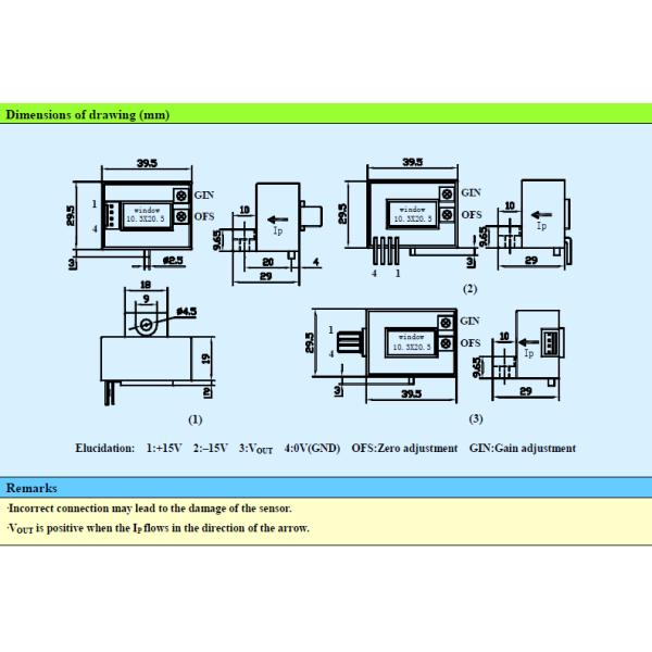Working voltage(supply voltage of the sensor): DC ±12V or ±15V